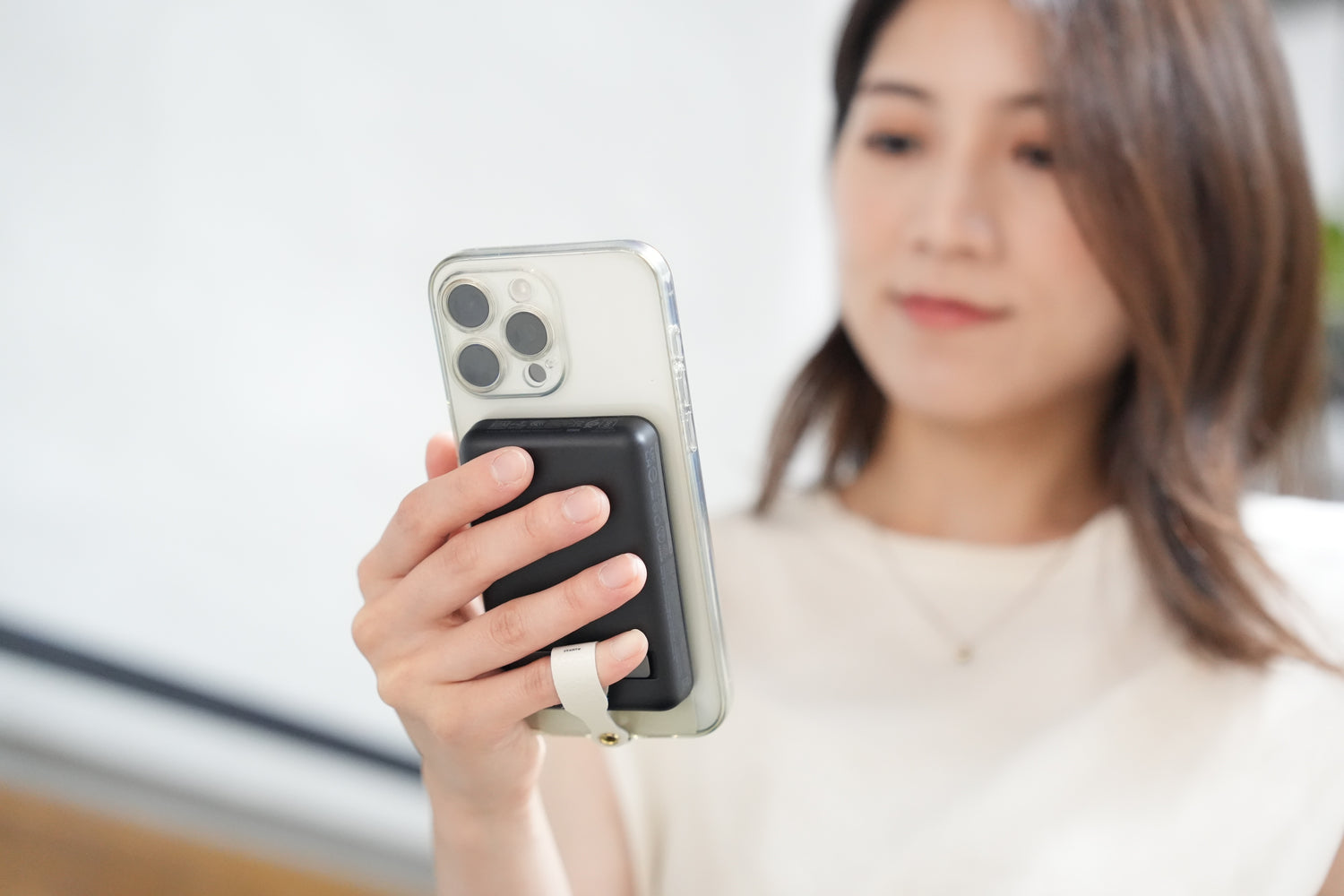 ネックストラップやチャームを取り付けられることに加え、ジンバルやMagSafeとも干渉しません。