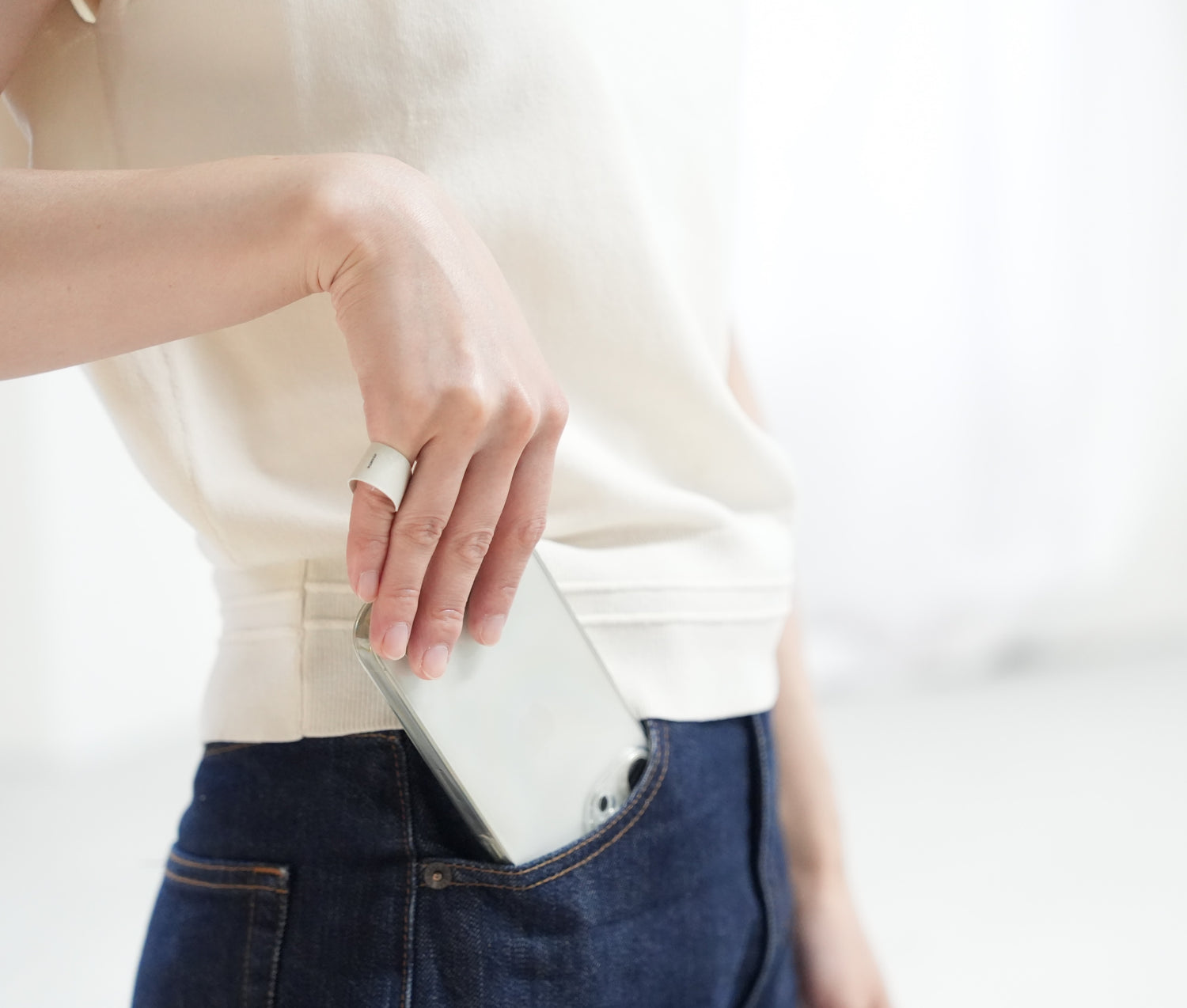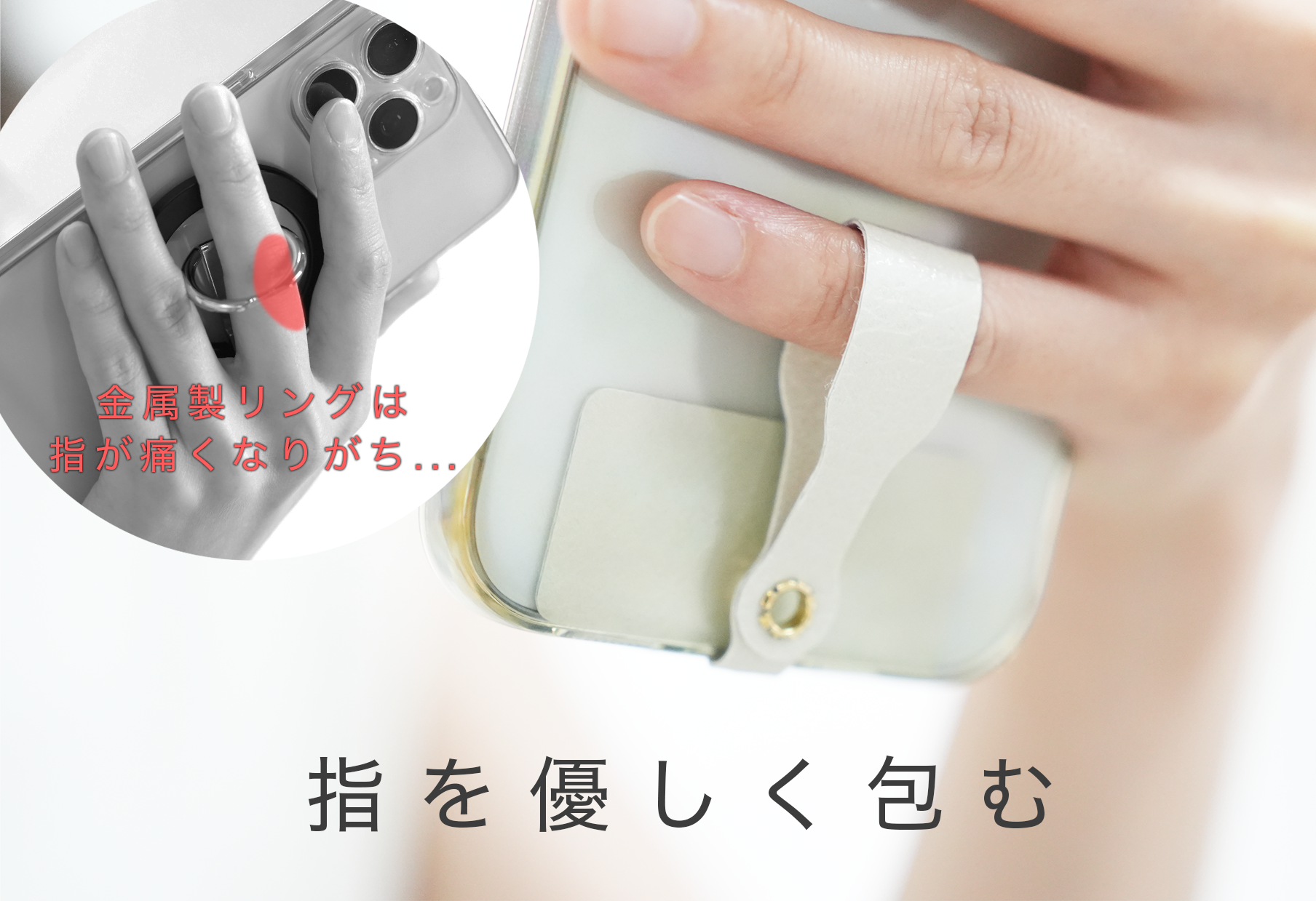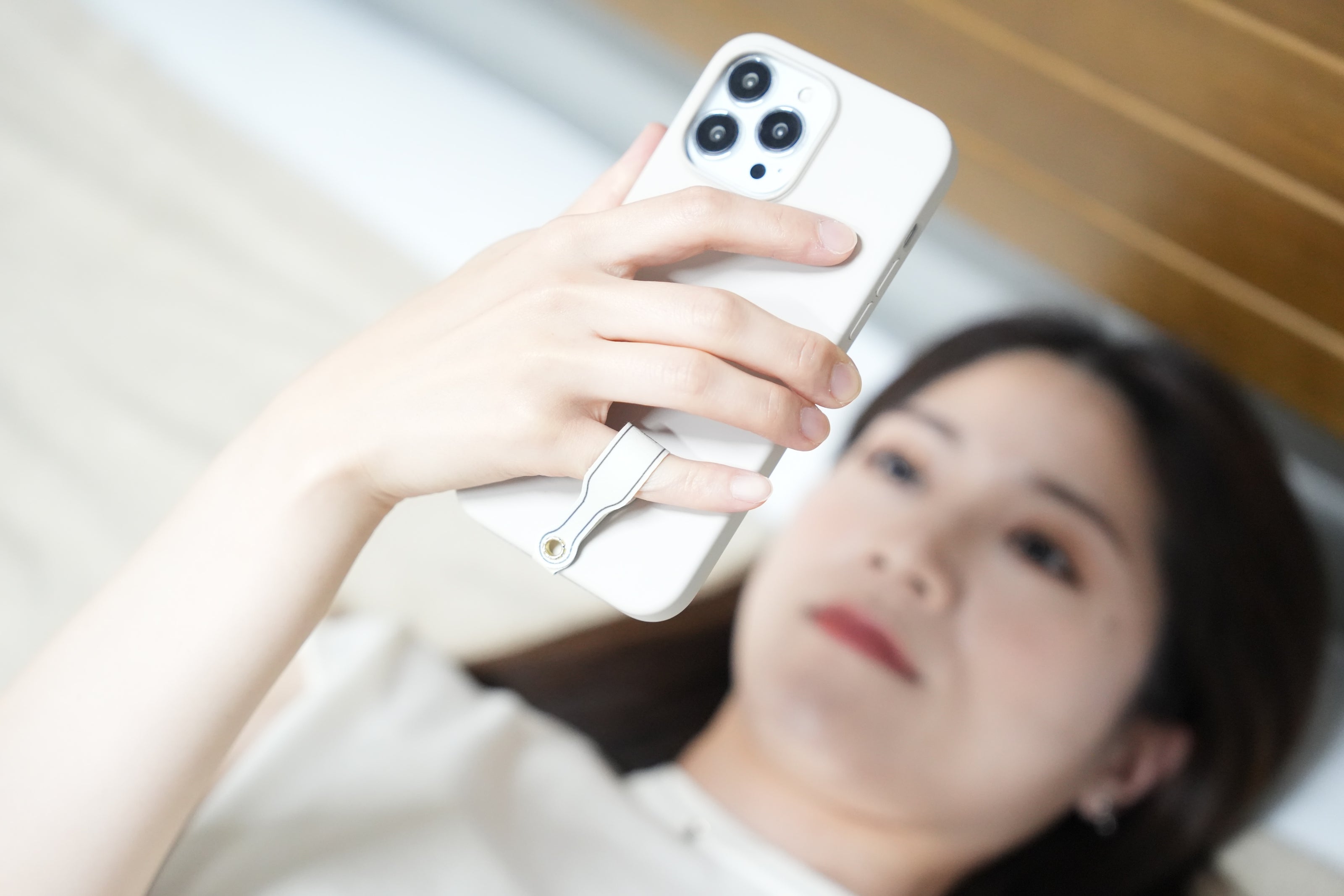 スマホを"握らず"に持てるようになることで、手の緊張が軽減され楽にスマホを持てるようになります。また、重心位置が変化しスマホが軽く感じる効果も。