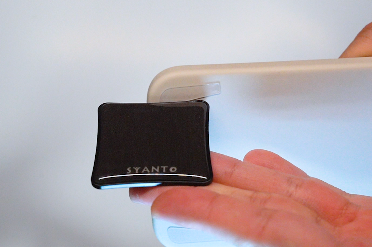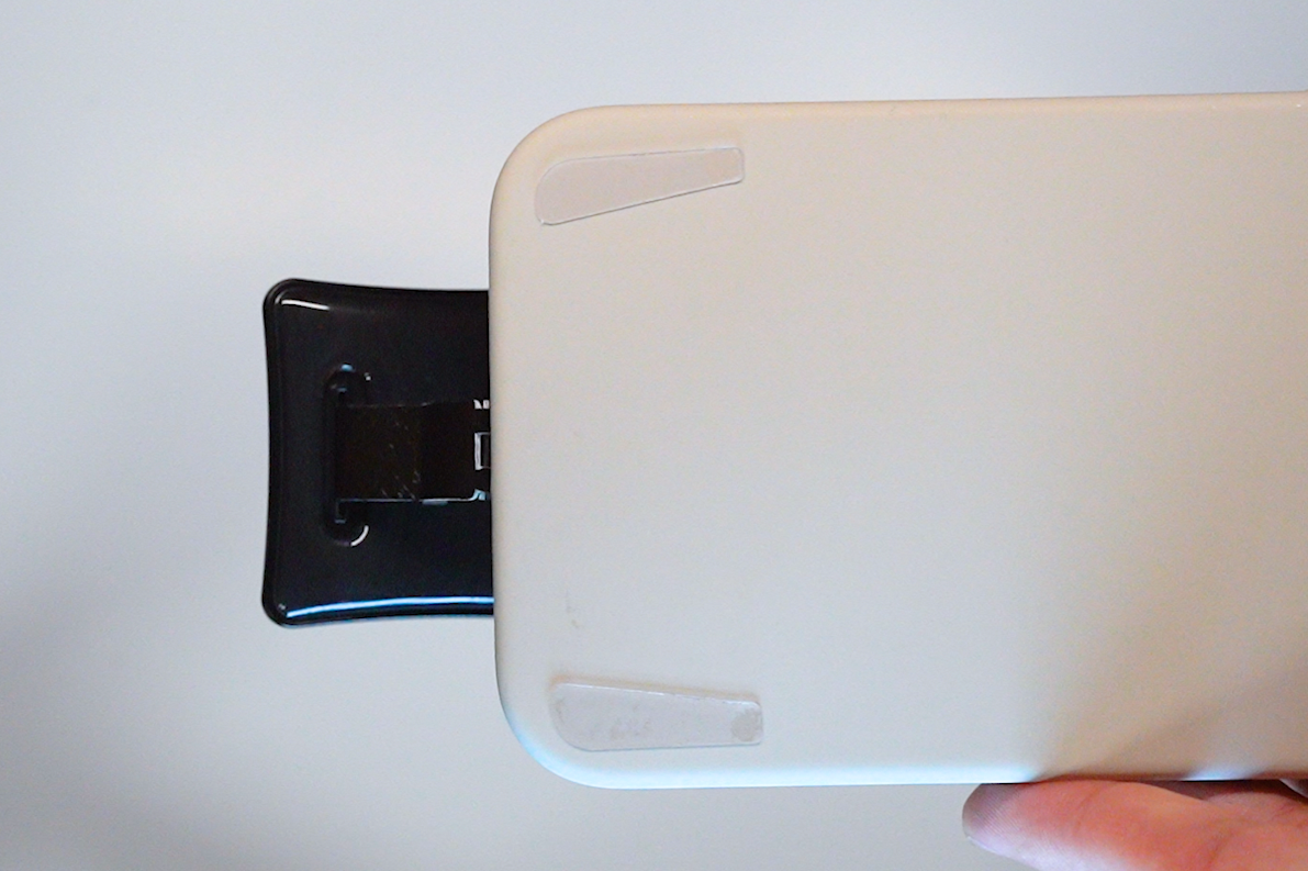 スマホに吸着部を取り付けて滑り方向を強化します。