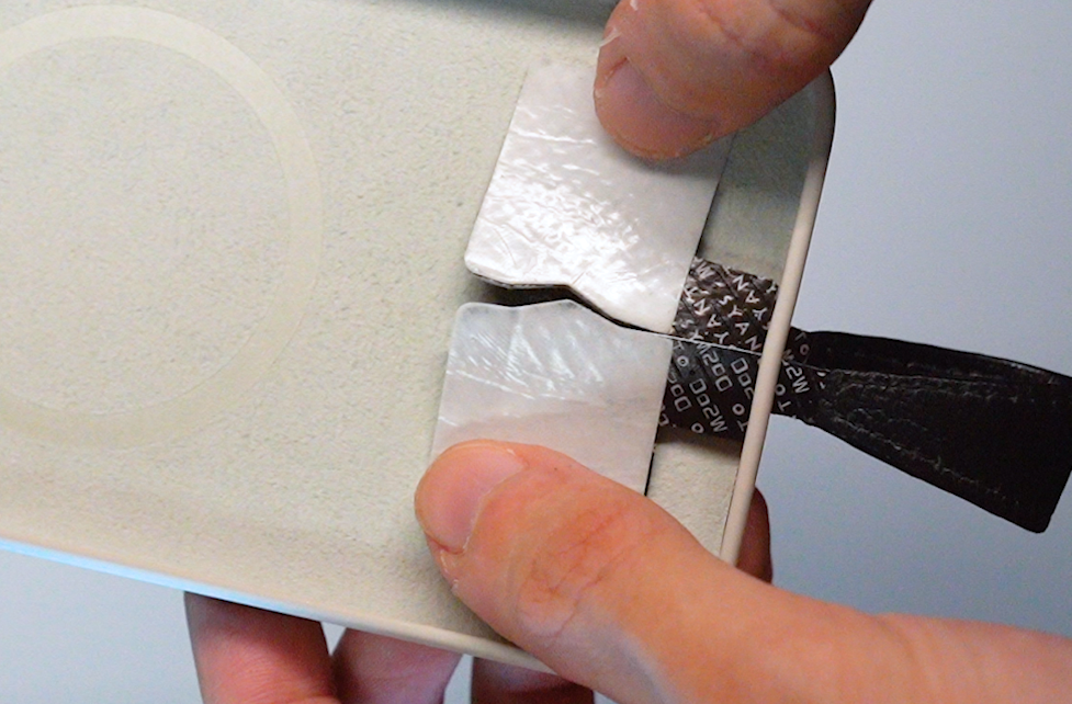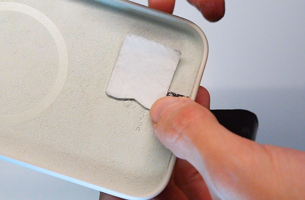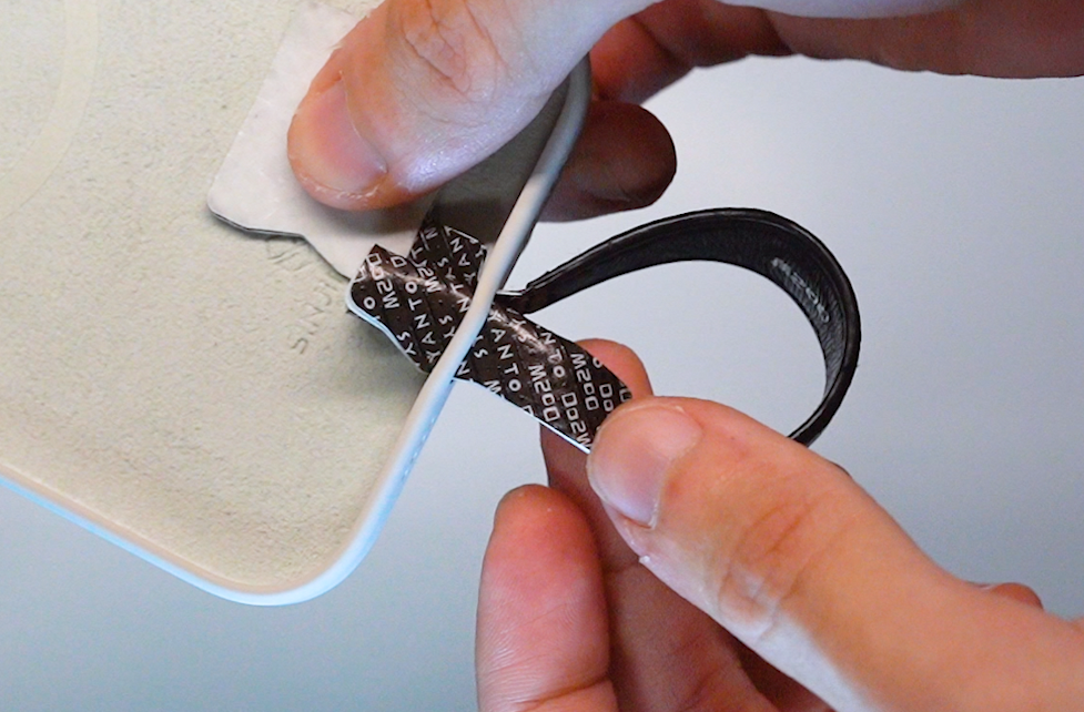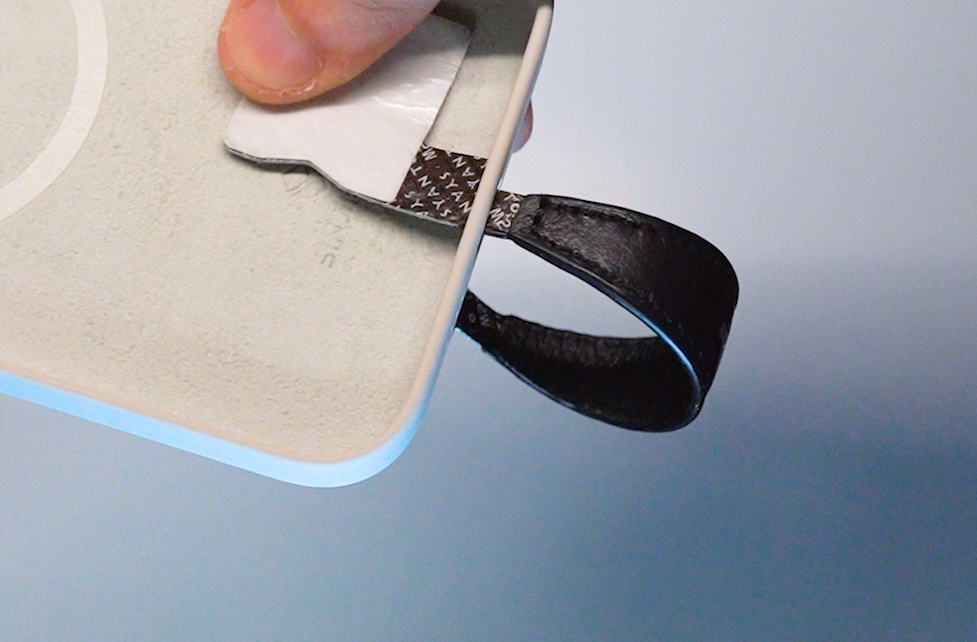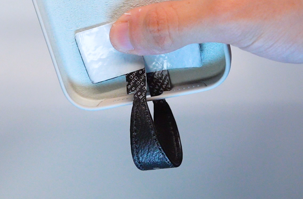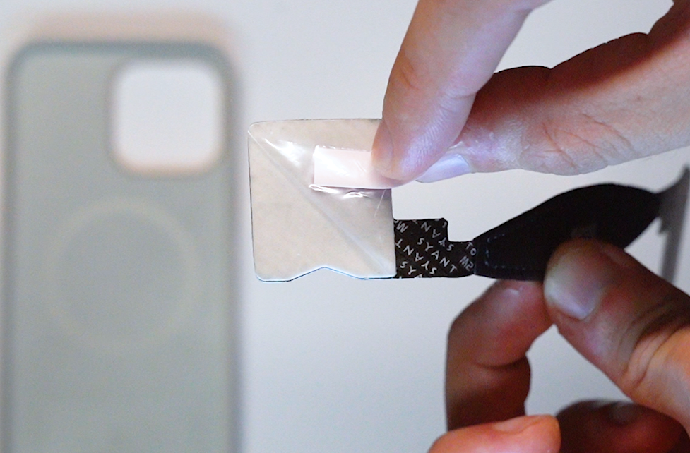 スマホに吸着部を取り付けて滑り方向を強化します。