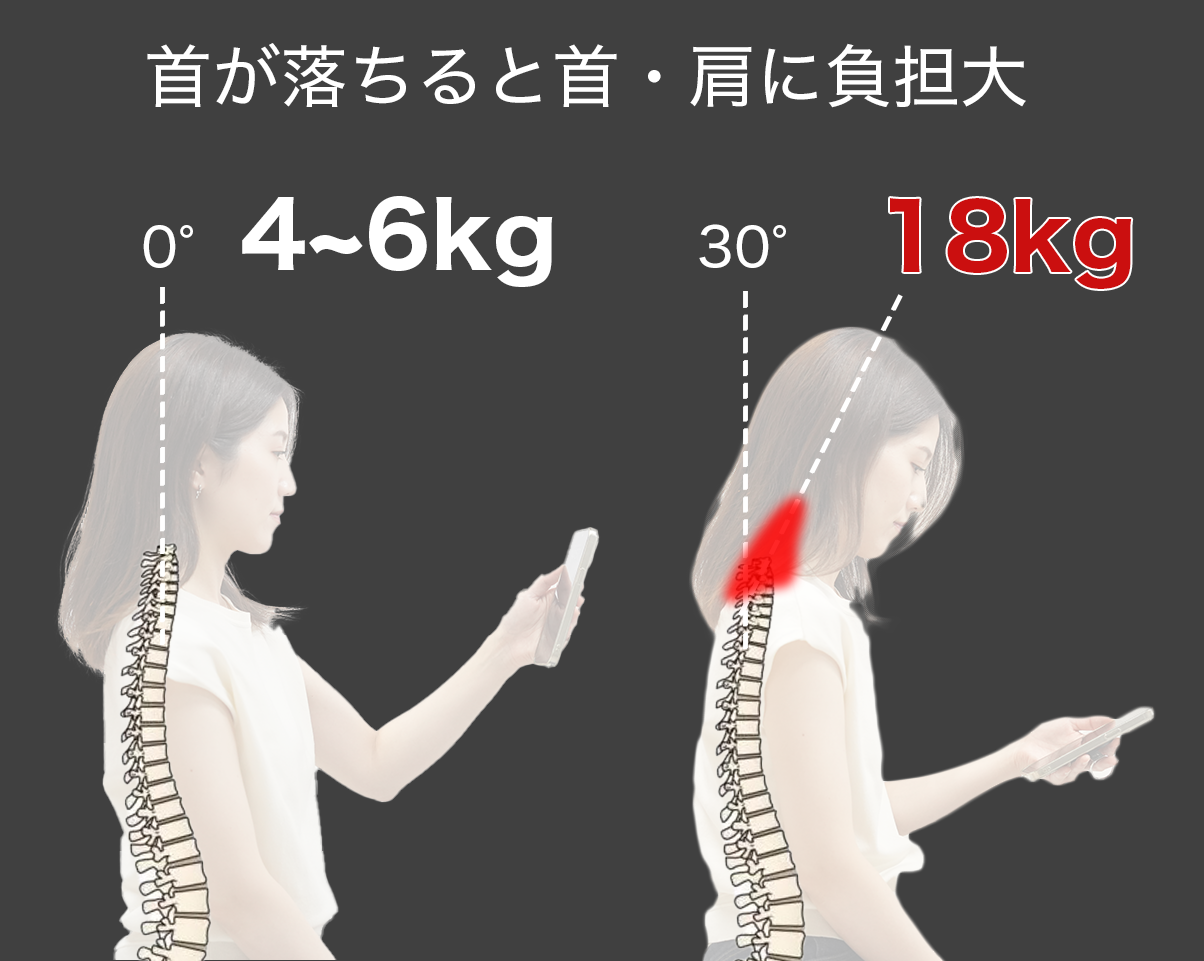 スマホが寝ていると、覗き込もうとして、首が落ちて姿勢が丸まっていきます。猫背やストレートネックの原因にもなってきます。