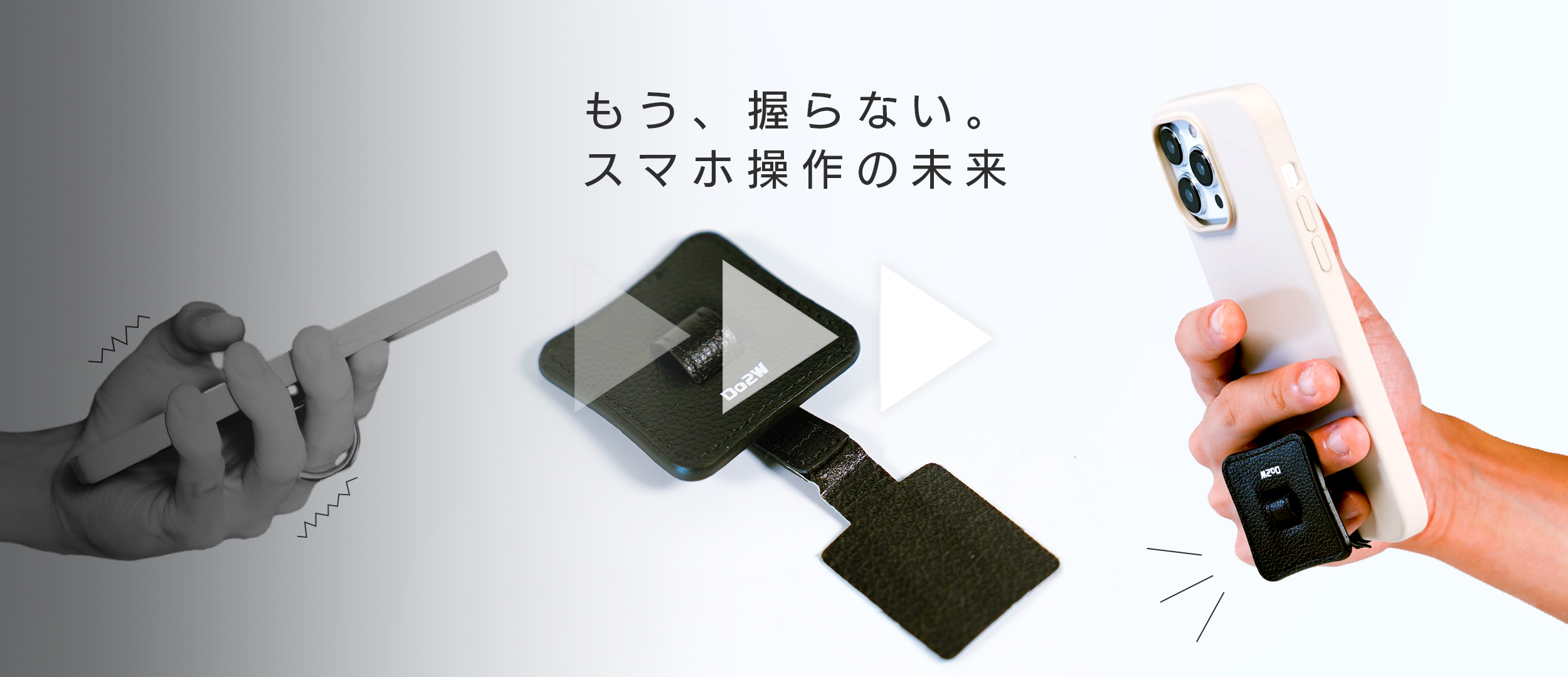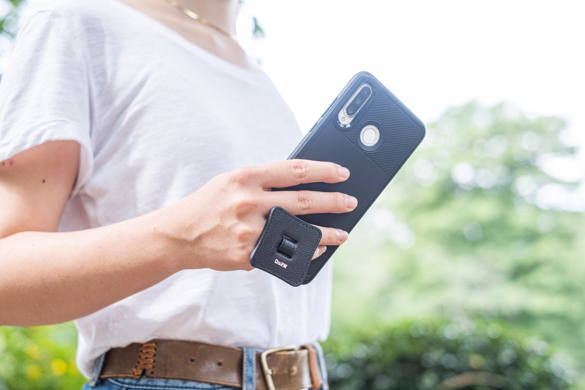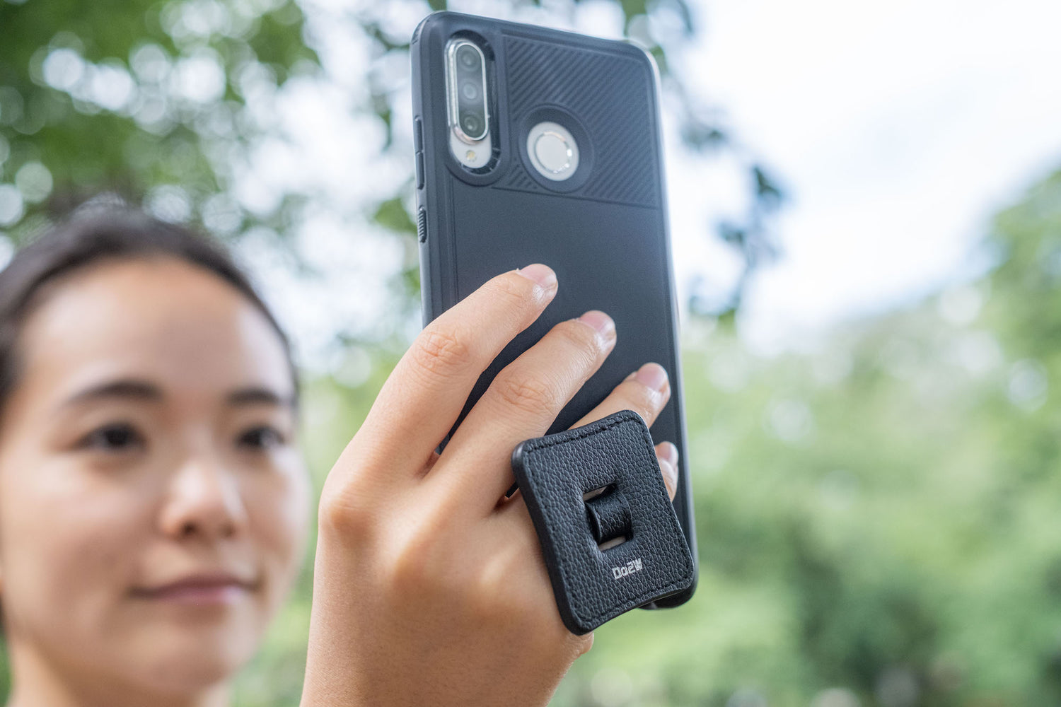 SYANTOのバッジ部分を指で挟むことで、指に力を入れなくても自然とスマホを保持でき、スマホを落下させる可能性を大幅に減らしました。