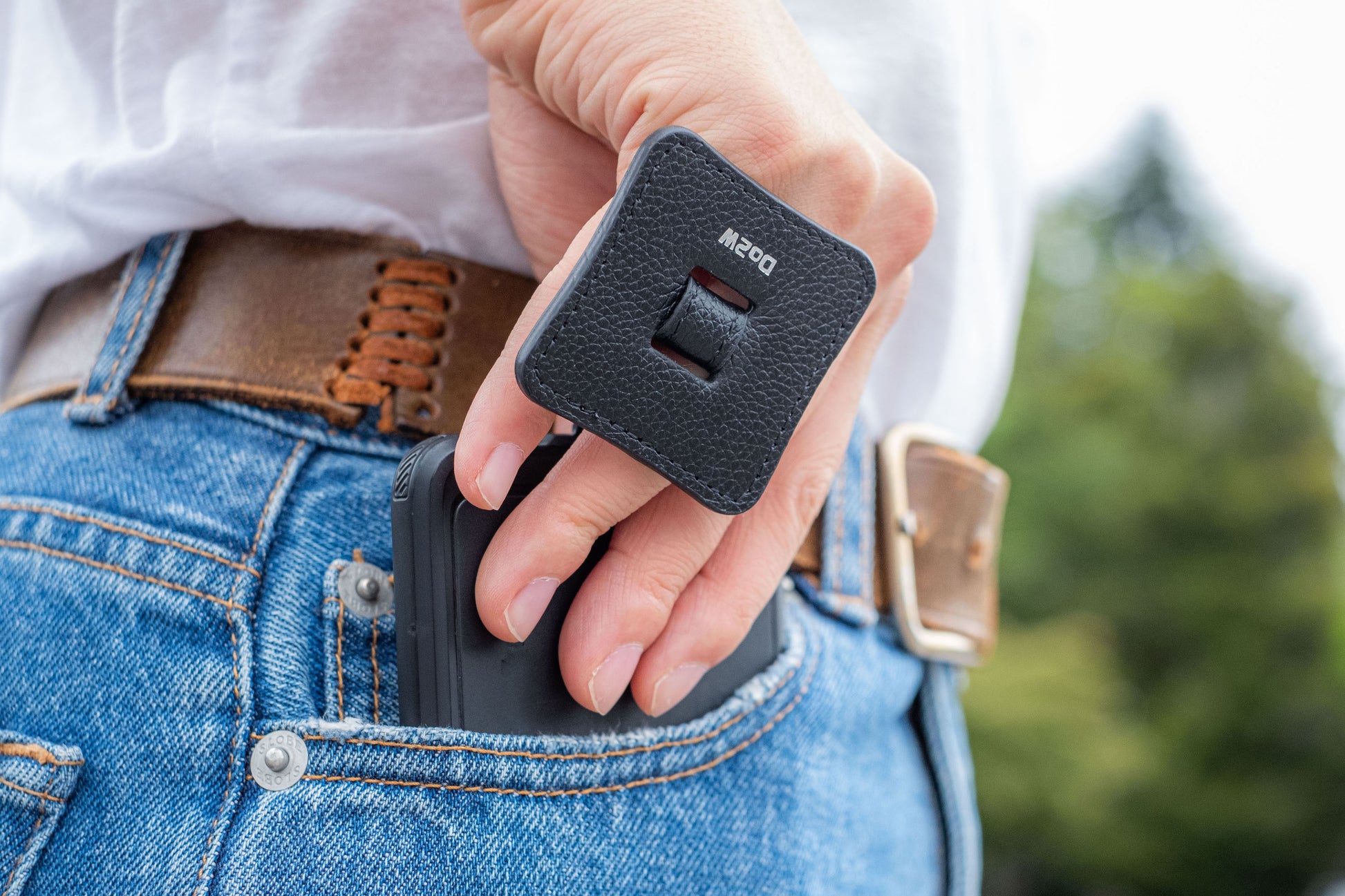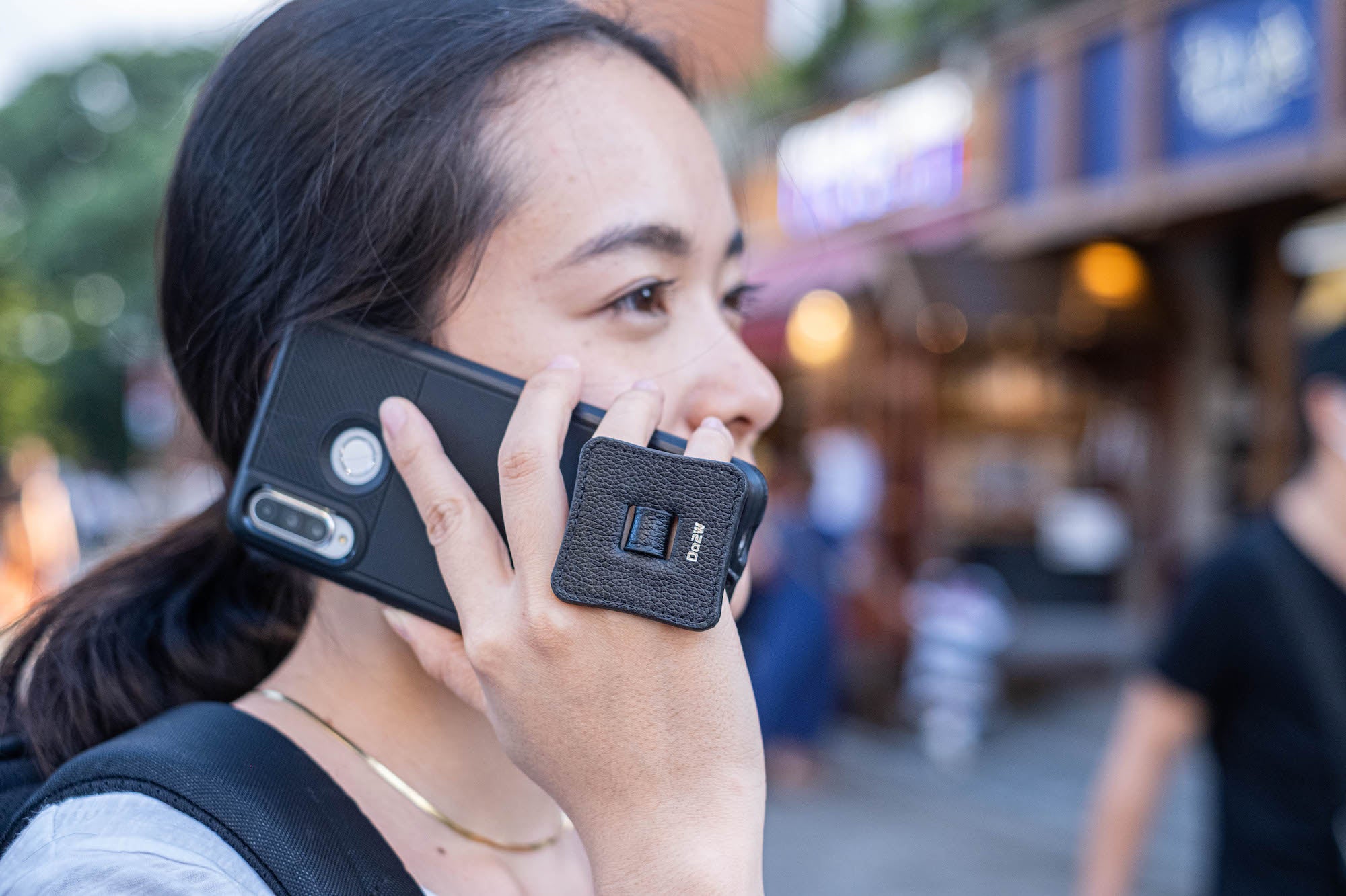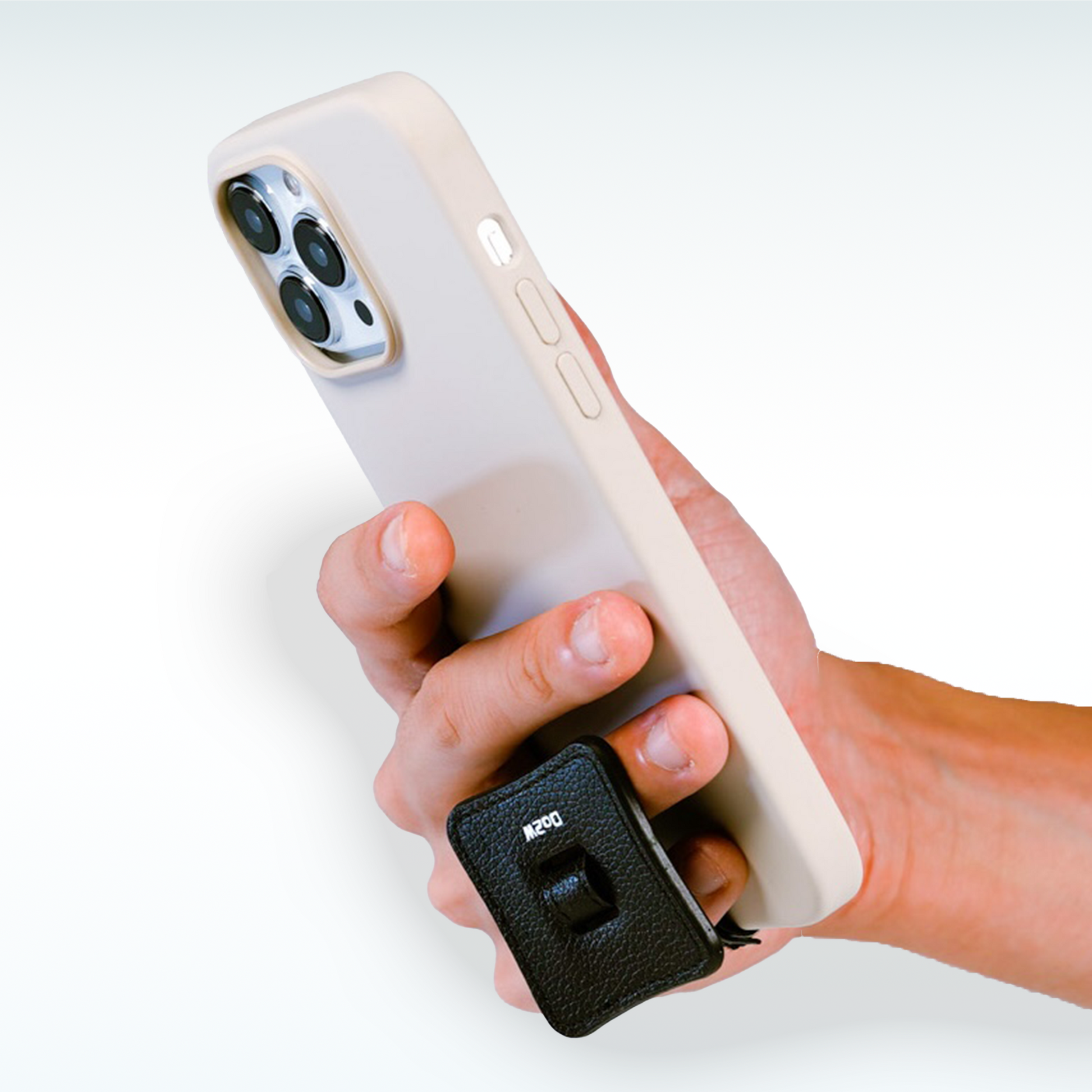 SYANTOのバッジ部分を指で挟むことで、指に力を入れなくても自然とスマホを保持でき、スマホを落下させる可能性を大幅に減らしました。