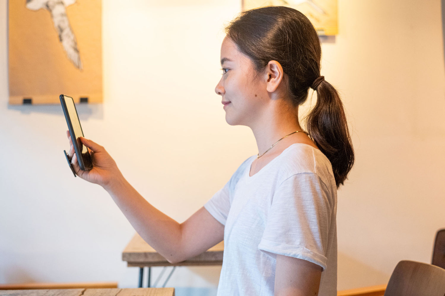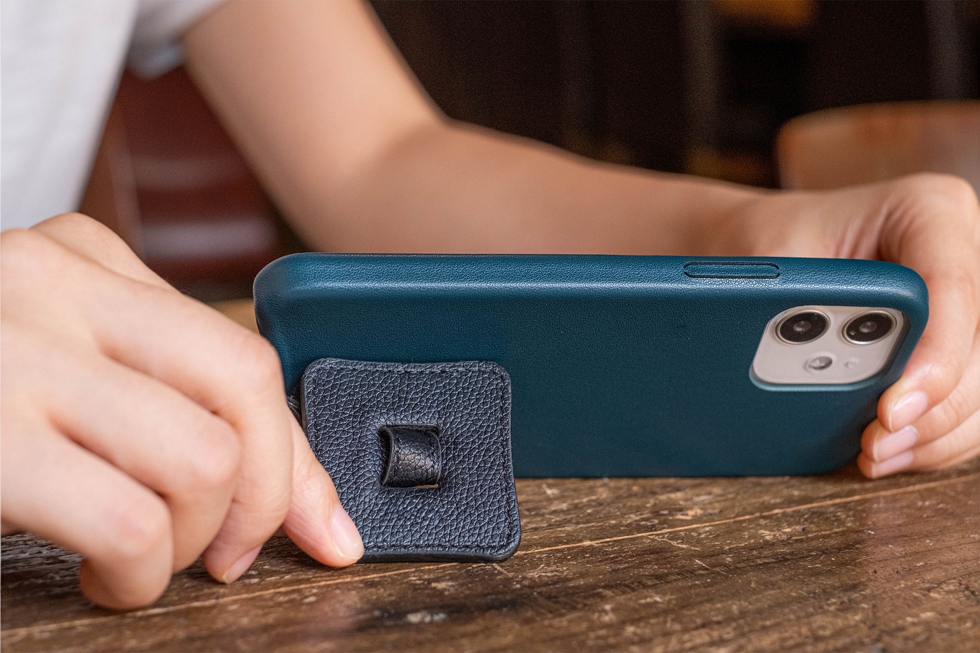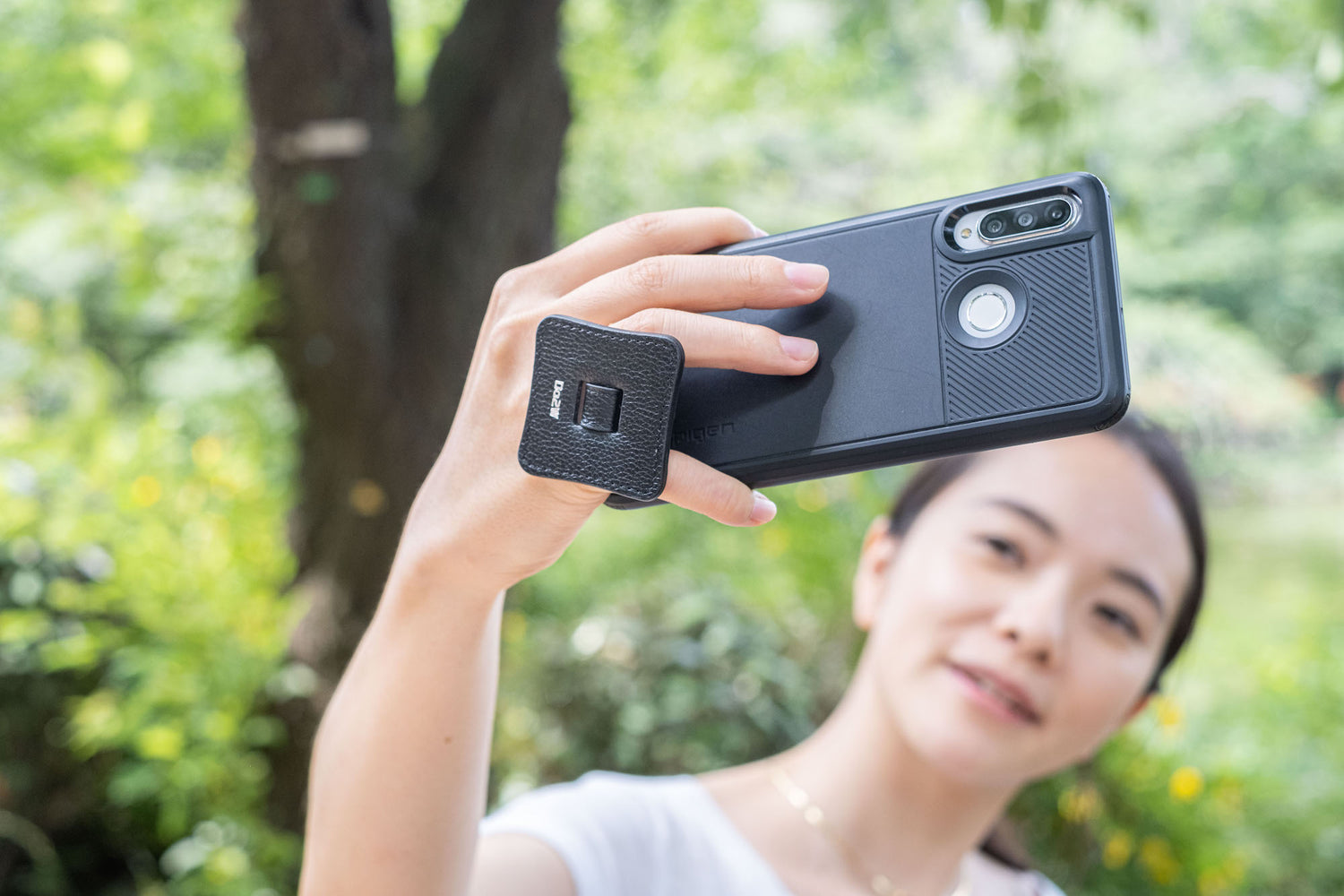 SYANTOのDNAとして受け継がれている「姿勢が起きる」リング機能。スマホが垂直になりやすく、小指を使うことで姿勢にも良い効果が期待できます。