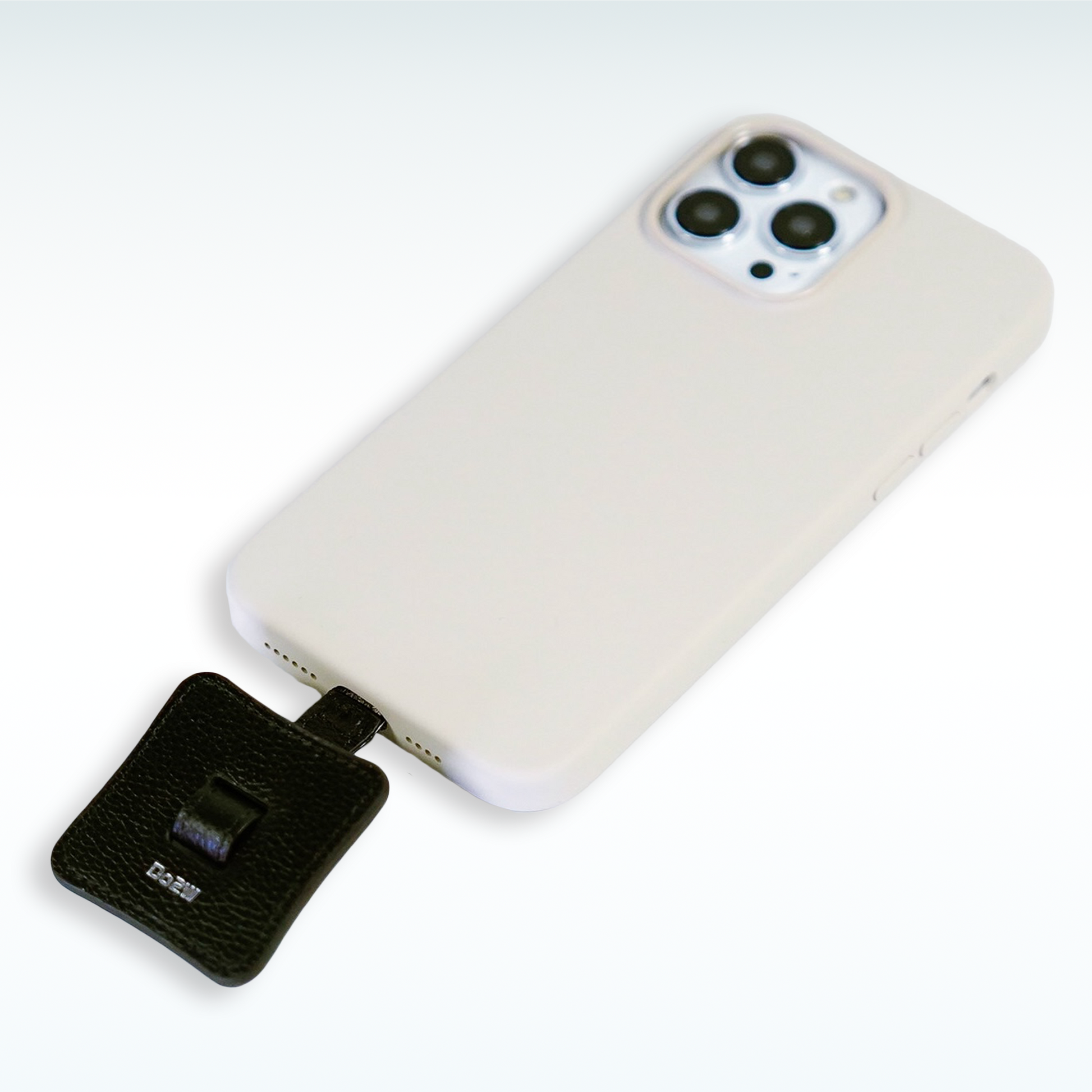 充電口から挿入して取り付けるSYANTOですが、薄さにもこだわりがあり、コード充電を邪魔しません。取り付けたままでもサッと充電可能。