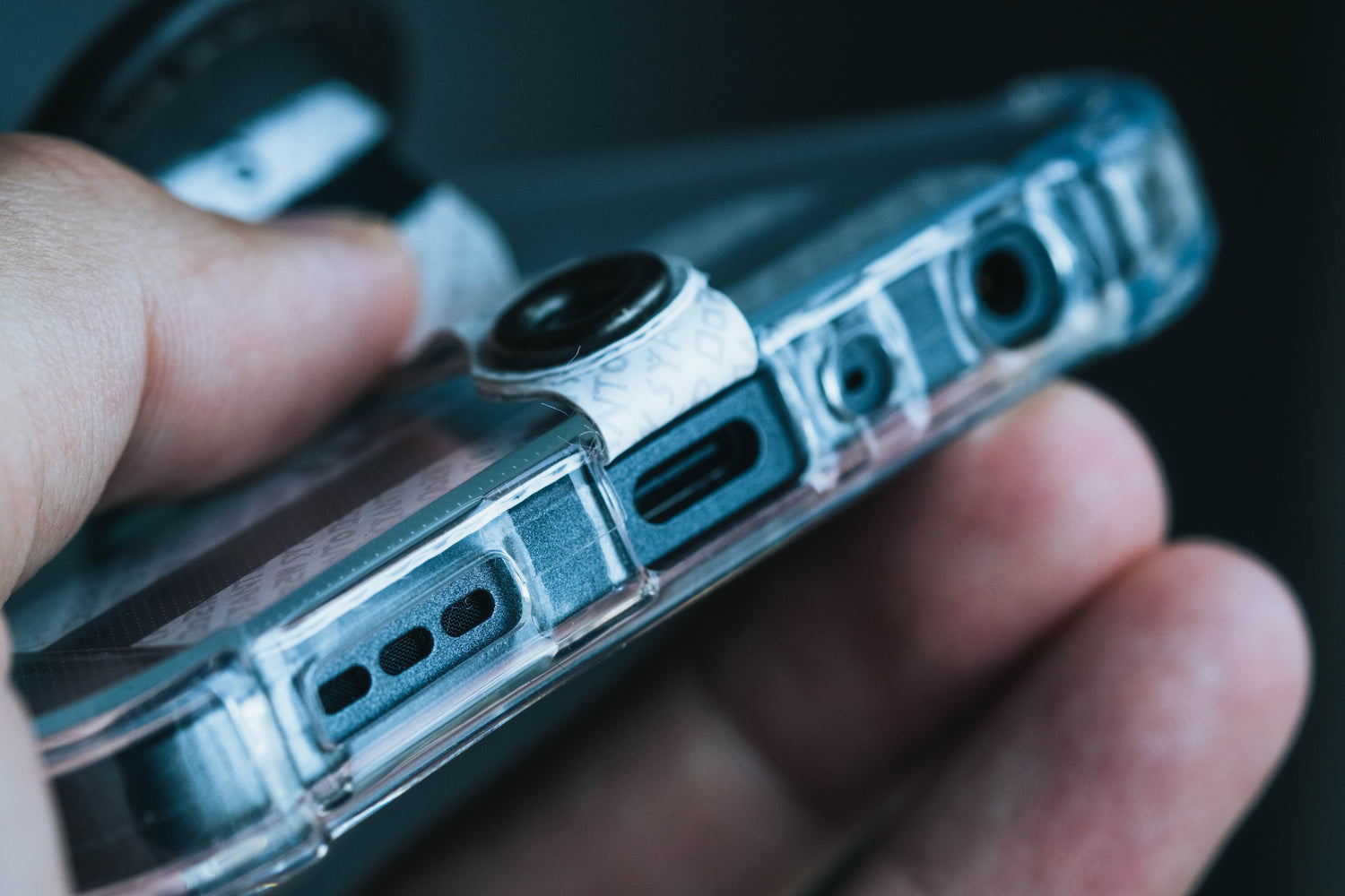 充電口から挿入して取り付けるSYANTOですが、薄さにもこだわりがあり、コード充電を邪魔しません。取り付けたままでもサッと充電可能。