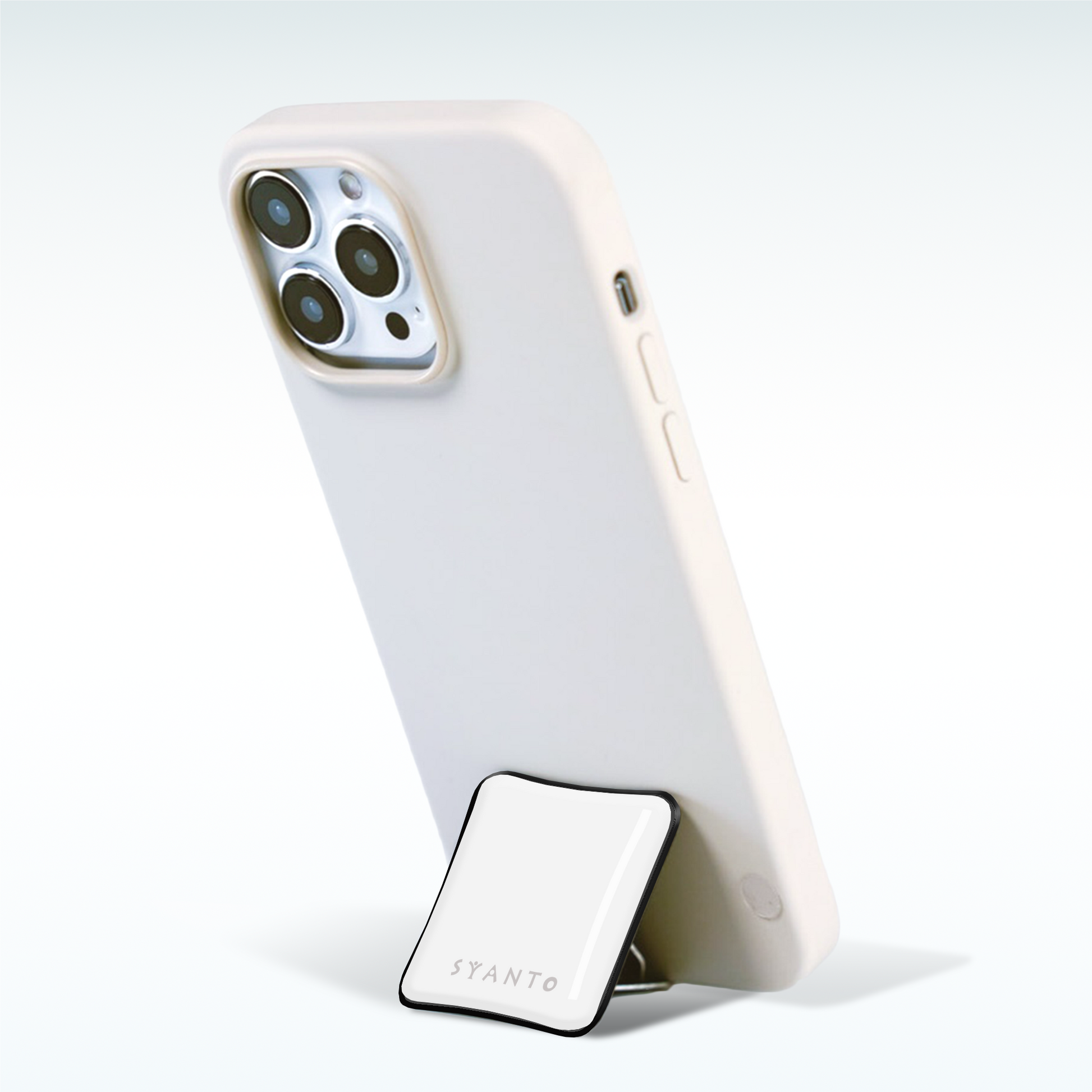 SYANTO Stand はスマホ機種を選ばすに取り付けできます。カバーを必要としますが、手帳型カバーでもご利用いただけます。一部対応が難しいカバーがございますので、下記を参考ください。