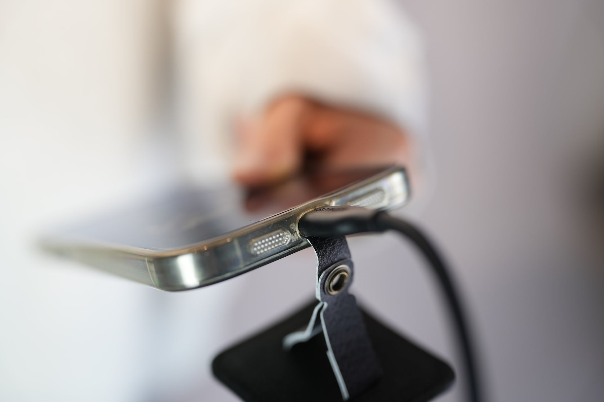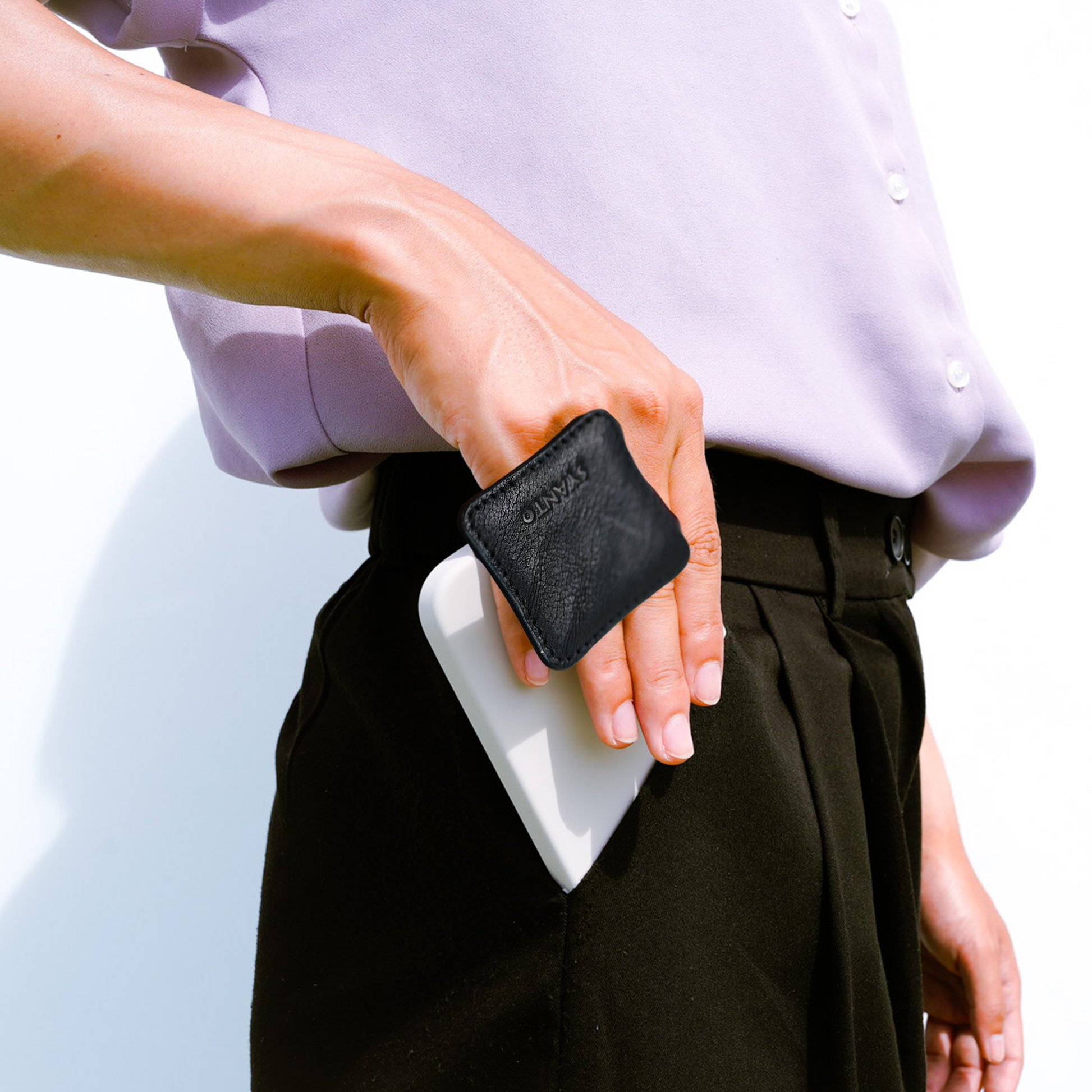 人間工学に基づいて設計されたSYANTOは、スマホを"握らず"に持つことで手の緊張が軽減され、楽にスマホを操作可能に。また、重心位置が変化しスマホが軽く感じる効果も。